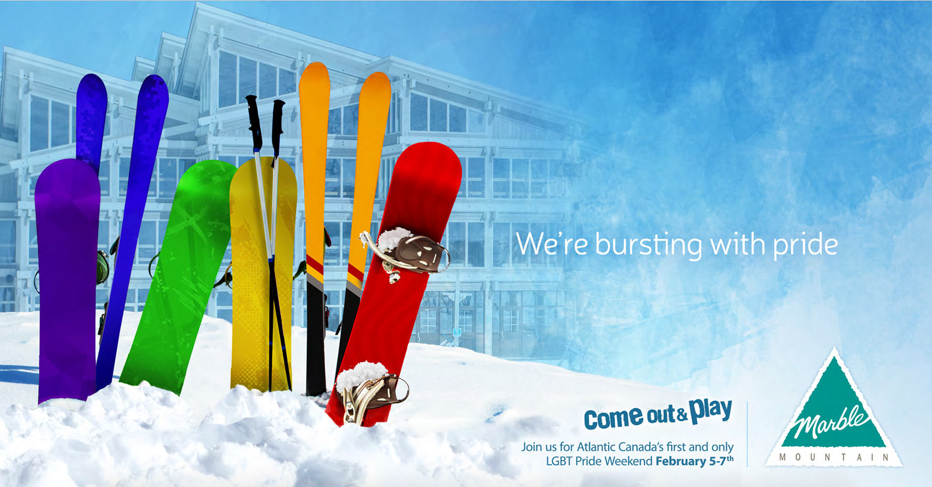Billboard / promotional image created for Pride Weekend at Marble Mountain Ski Resort.
